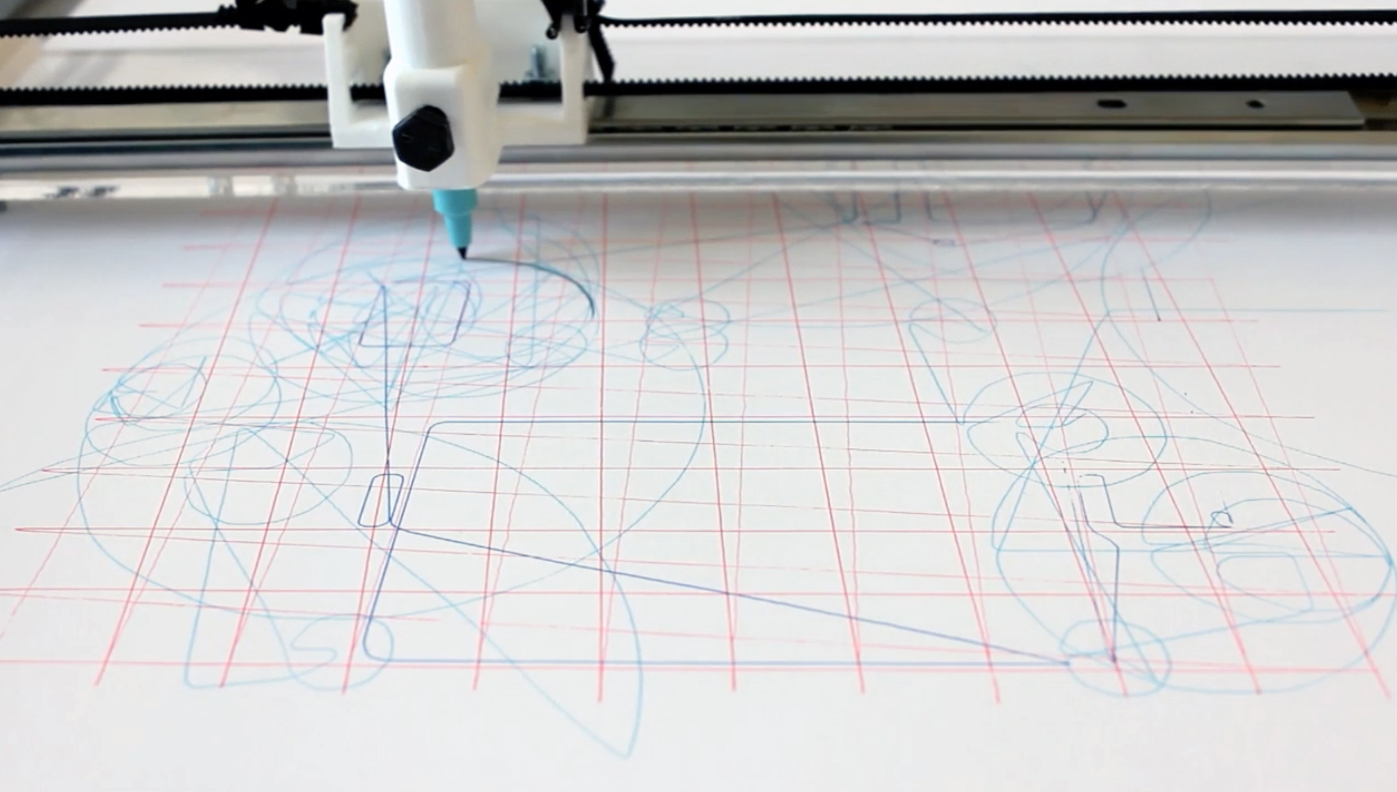 Drawing Ryue Nishizawa’s Access Canopy with the Anexact-but-rigorous drawing machine. Video still.