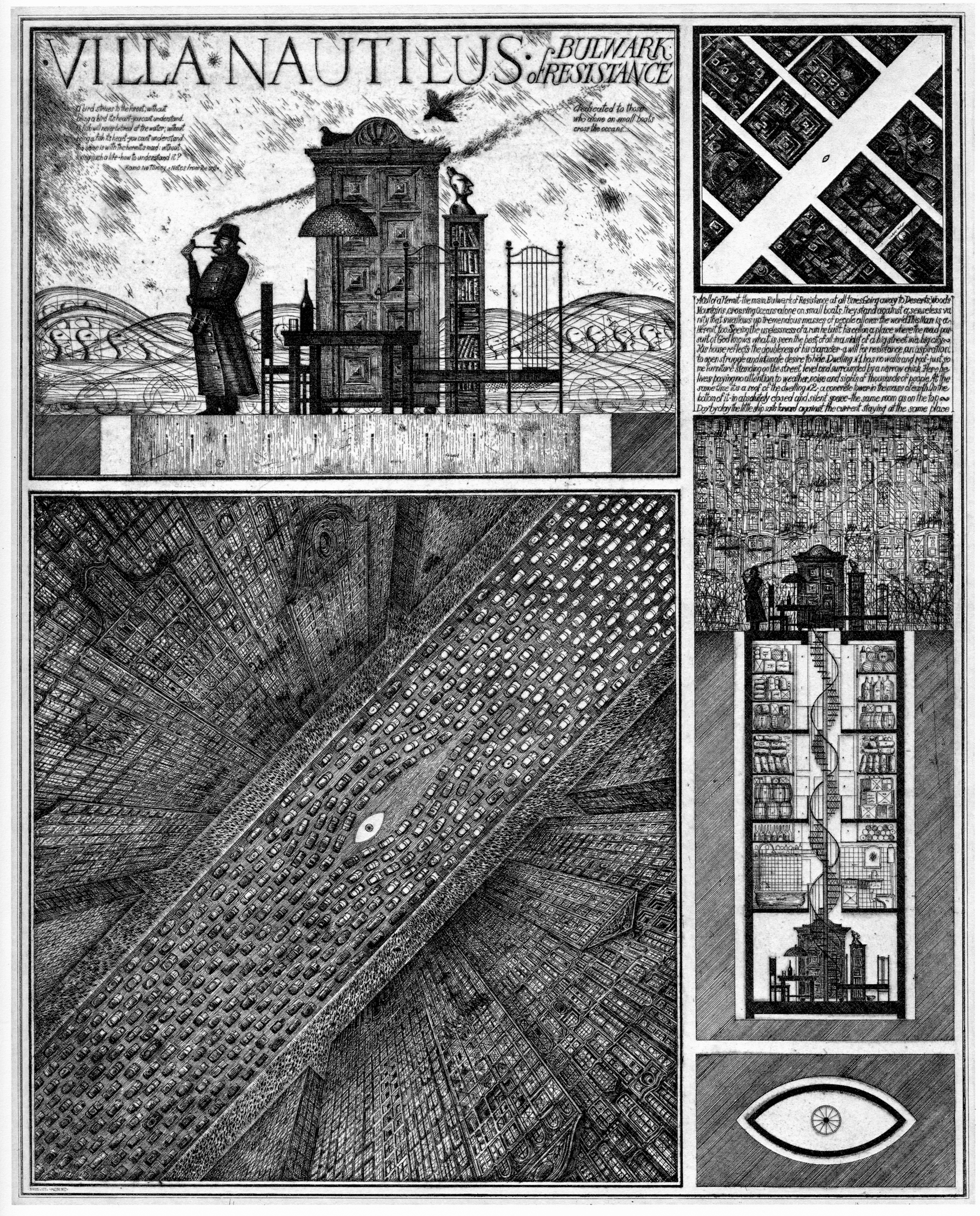Could we talk a little bit now about the city, and about cities, in your work Alexander? In the early work – that published in the Brodsky and Utkin book for example – the presence of the city, and of the city as an almost imaginary site or location for the project such as we see in the Villa Nautilus project, seems very important. I was wondering if you could talk a little bit about the city as a site of the imagination in this work, and how it might relate to specific cities of your experience?
